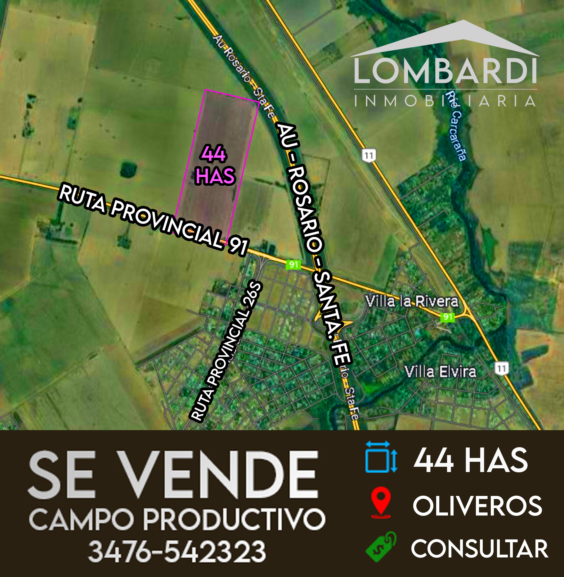 Se vende Campo en Oliveros (La Ribera) de 44has a metros de la Autopista Rosario-Santa Fe