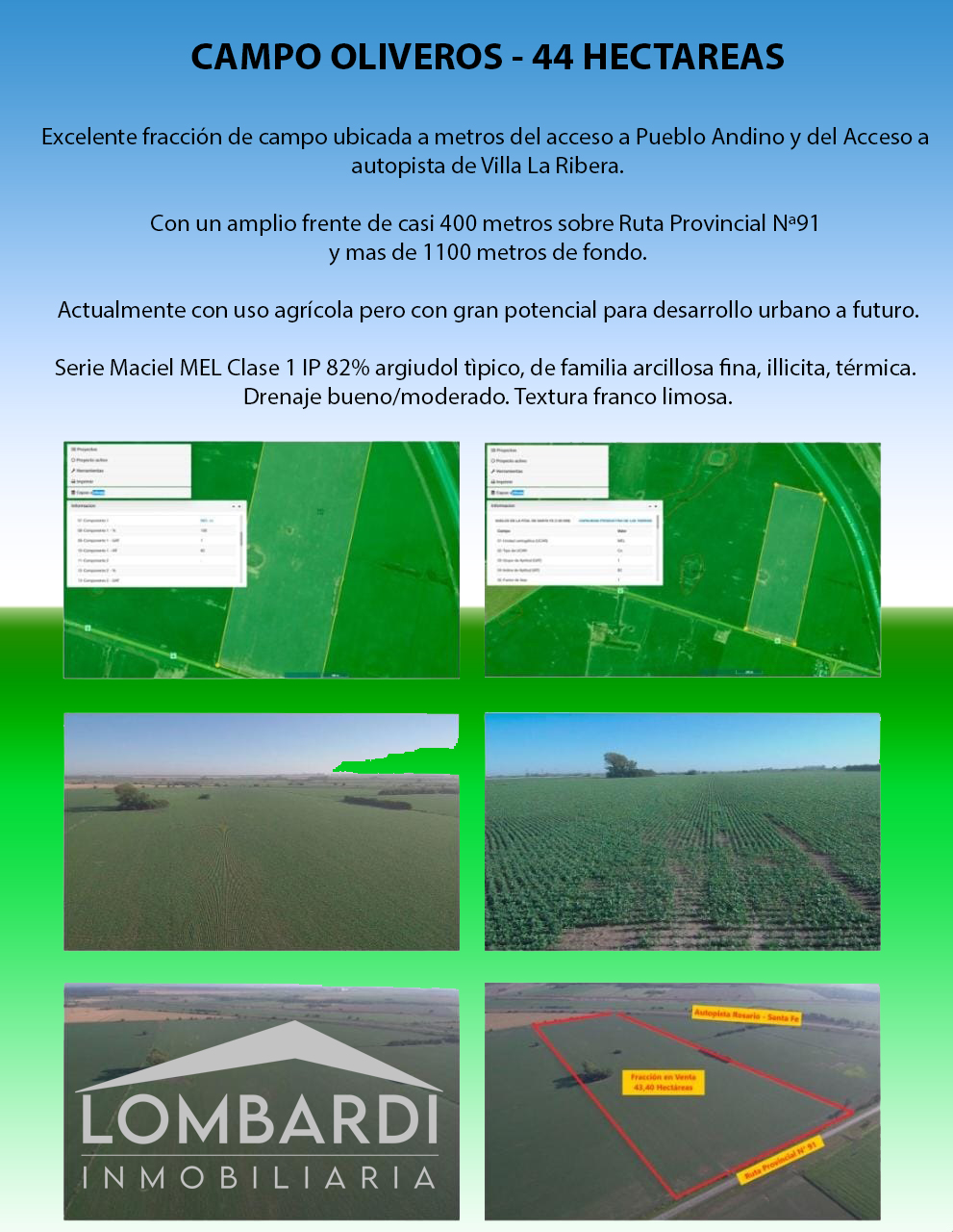 ✅️Serie Maciel MEL Clase 1 IP 82% argiudol tìpico, de familia arcillosa fina, illicita, térmica. Drenaje bueno/moderado. Textura franco limosa.