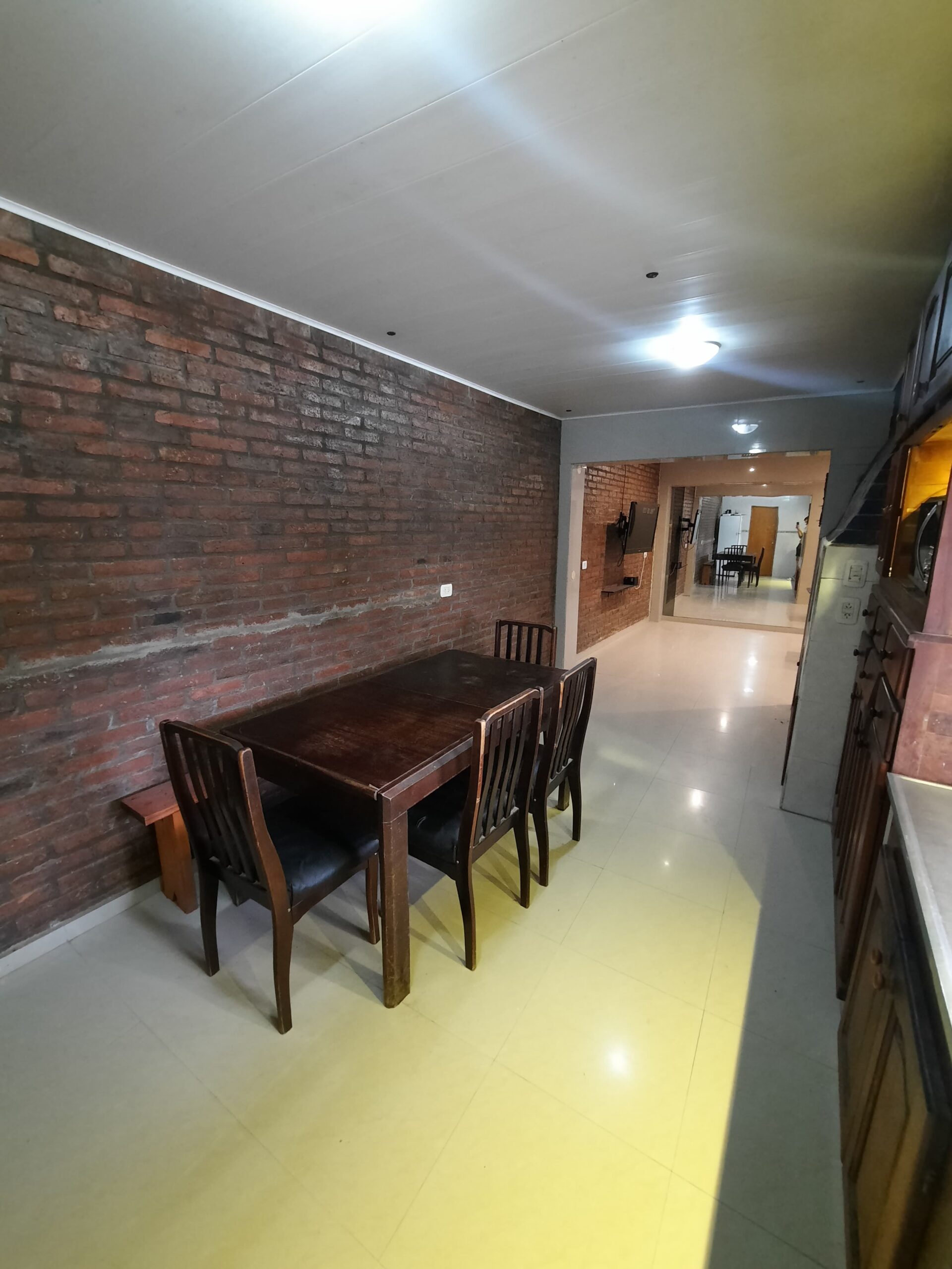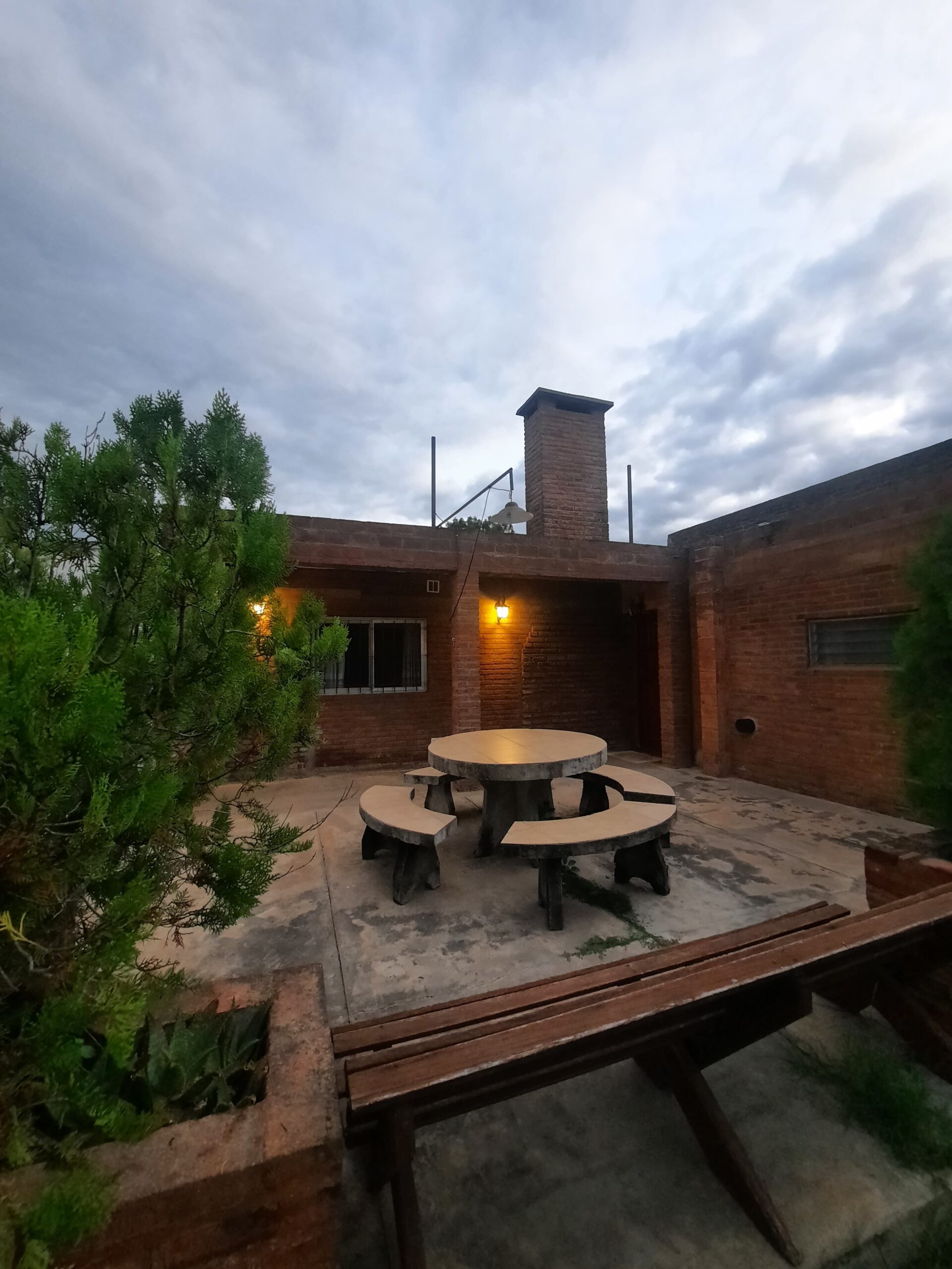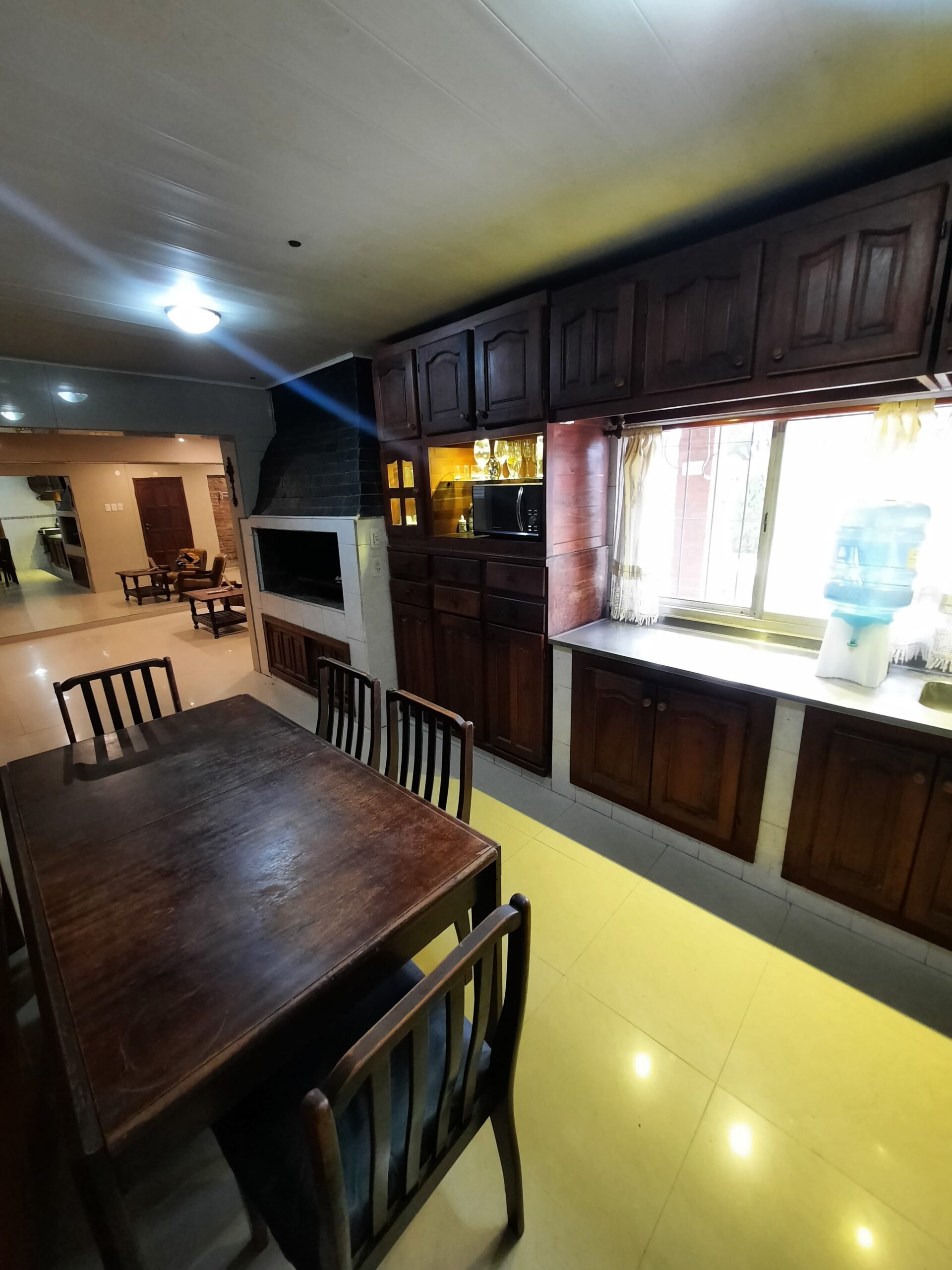 ?Cocina-comedor con parrillero interior, living, dormitorios, depósito y patio.
