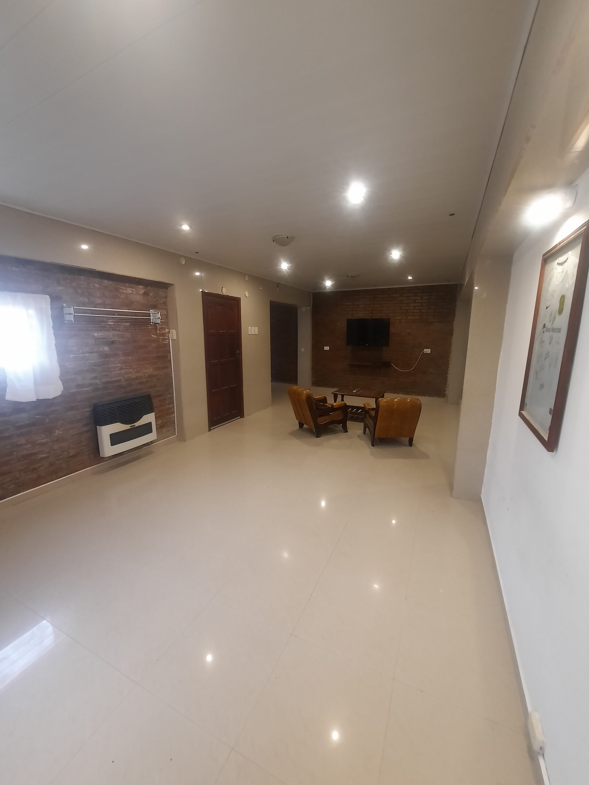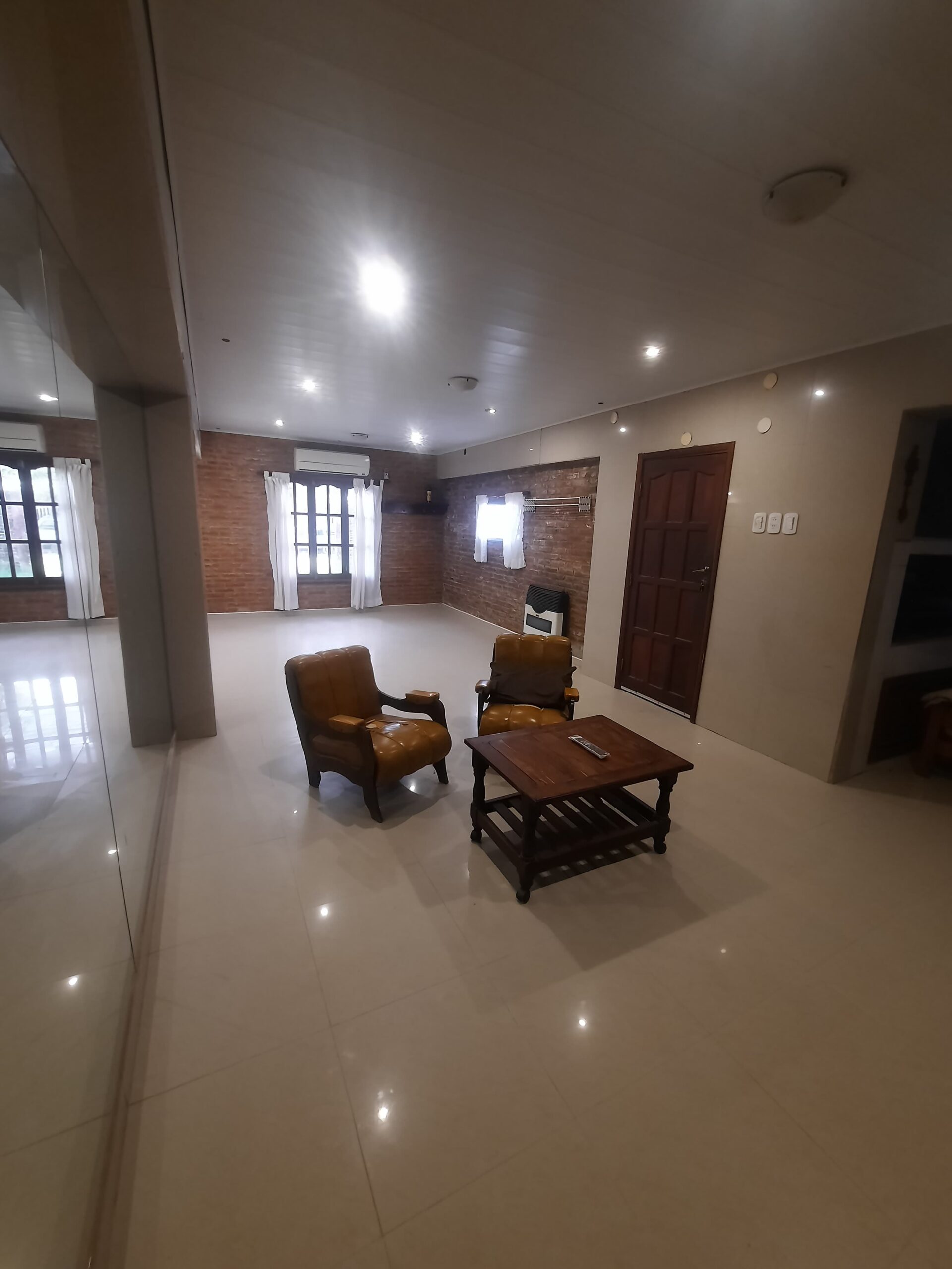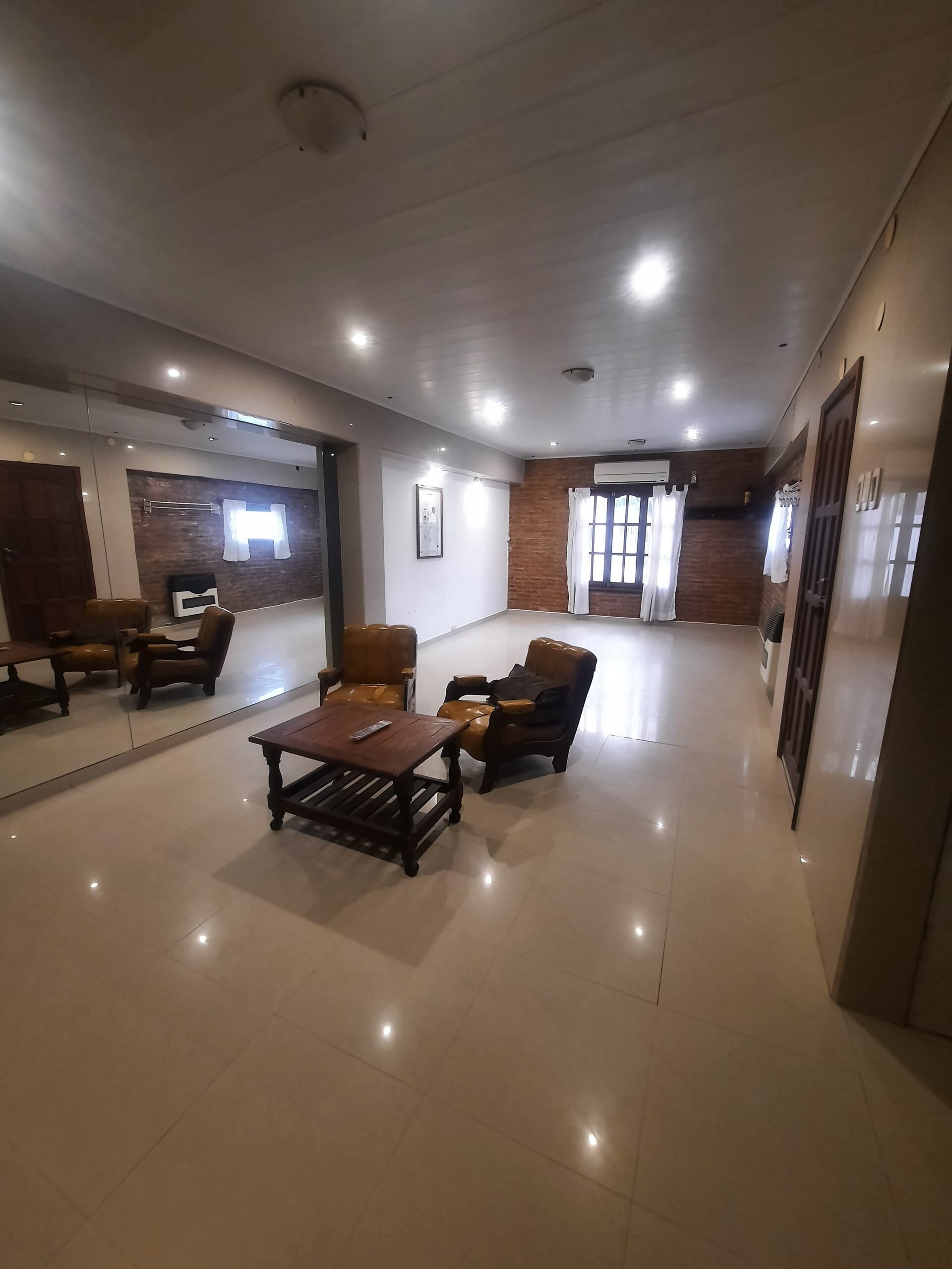 ?Cocina-comedor con parrillero interior, living, dormitorios, depósito y patio.